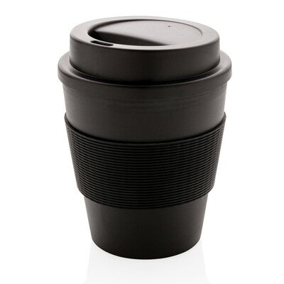 350ml Reusable Travel Mug with Custom Logo Branding – 100% Recyclable PP, Silicone Grip, Microwave & Dishwasher Safe